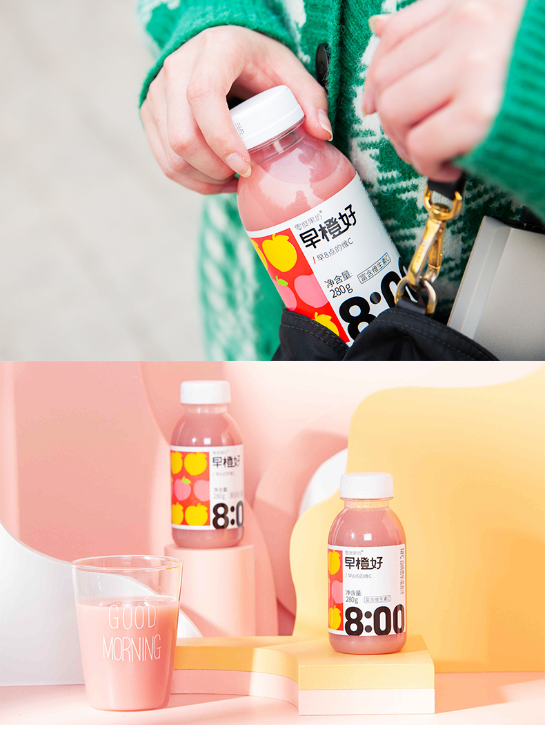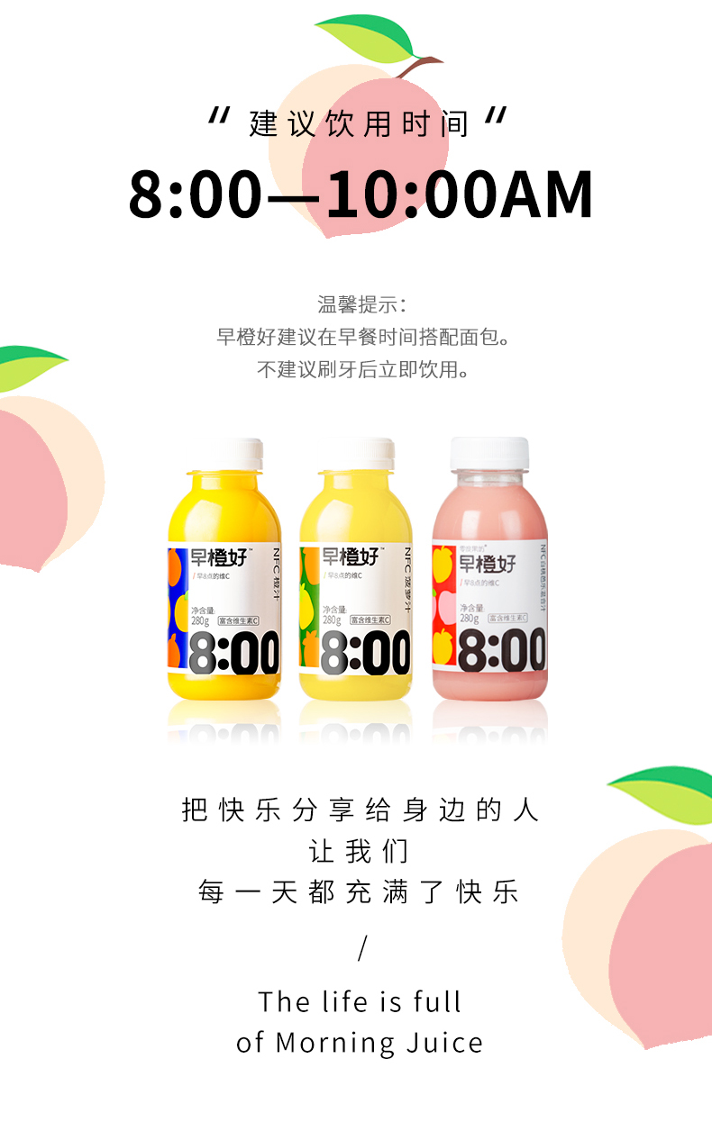零度果坊早橙好 NFC果汁 白桃芭乐混合汁100%早餐果汁280g*8瓶装